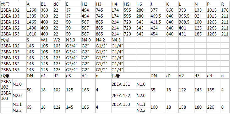 2BEA102/103/151/152/153直聯(lián)水環(huán)式真空泵傳動(dòng)安裝尺寸: