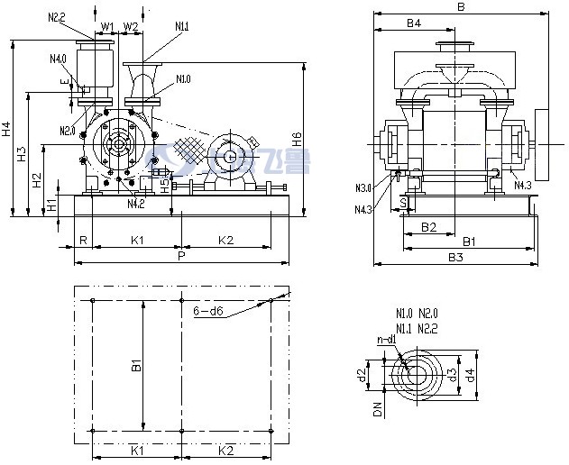 N1.1連通管法蘭 N2.2分離器法蘭 N3.0工作液接口