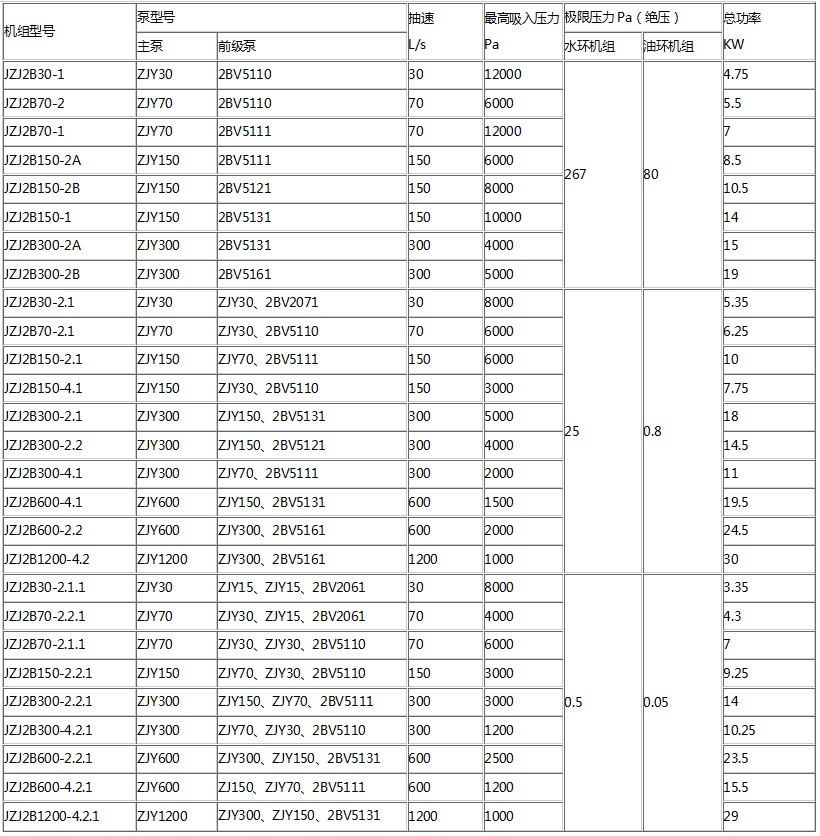 注:1.以上表格為行業推薦標準系列,因在實際生產應用中工作條件的不同,吸入氣體壓力會發生很多變化,所以在選型時應根據實際抽氣過程、氣體釋放過程、可疑氣體冷凝情況、吸入壓力的變化時間等進行校核計算或參照現有設備使用情況選型。